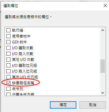 2.在欄位上按右鍵〉 選取欄位〉勾選映像路徑名稱