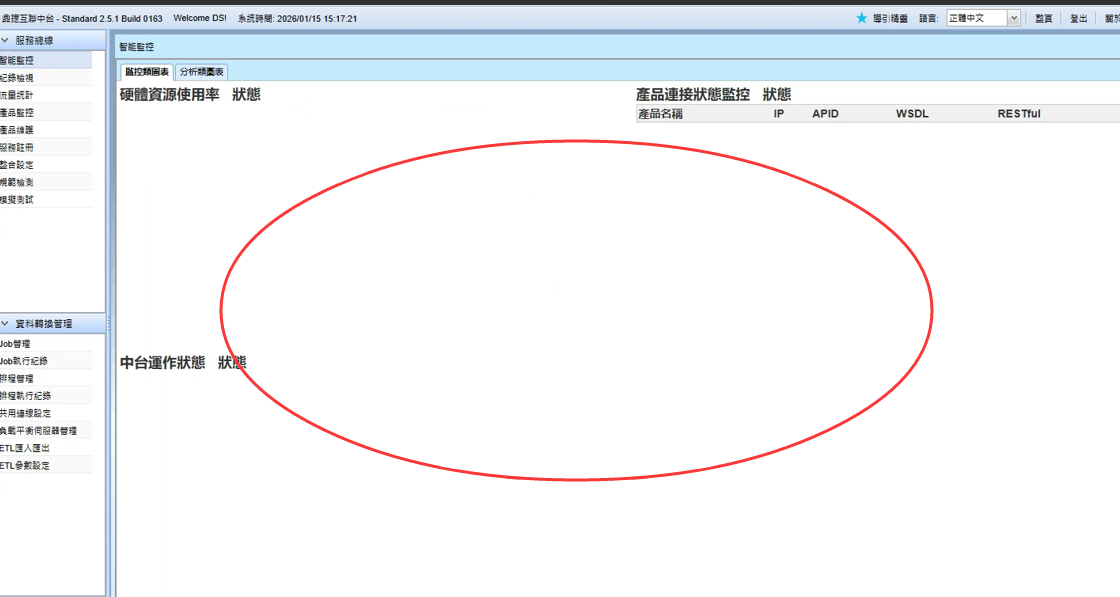 後端有問題,可能與中台服務權限有關(取WMI服務)