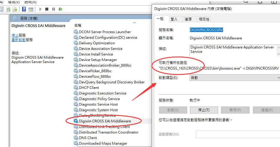 1. 先確認執行中的服務,從服務中可查看實際的執行目錄(附圖)